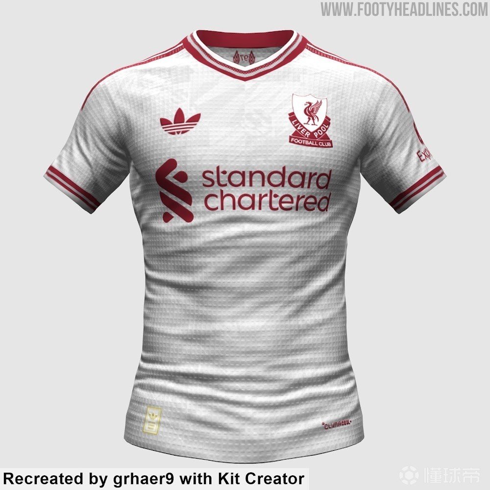 4月5日,足球裝備網(wǎng)站Footyheadlines曝光了利物浦2026-27賽季客場球衣的設計細節(jié)。這款由阿迪達斯打造的客場球衣以白色為主色調(diào),搭配栗紅色的徽標,并在前胸采用獨特的盾牌式徽章圖案,靈感來源于1970年代的徽章設計。
