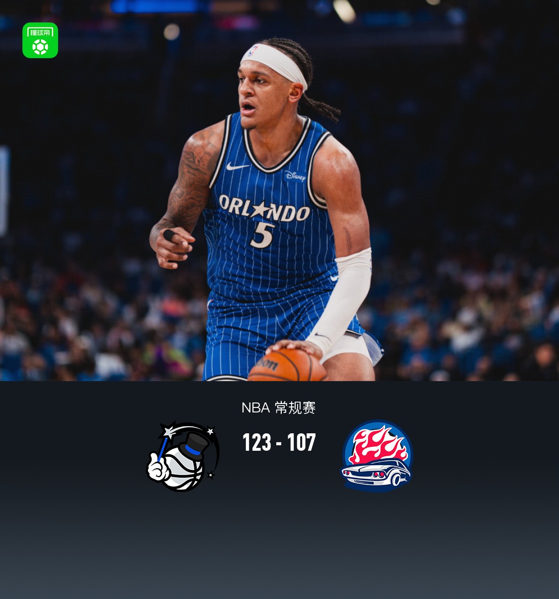 奧蘭多魔術(shù)班凱羅31分5板3助3斷,貝恩25分3板1助2斷3帽,布萊克14分1板2助2斷;