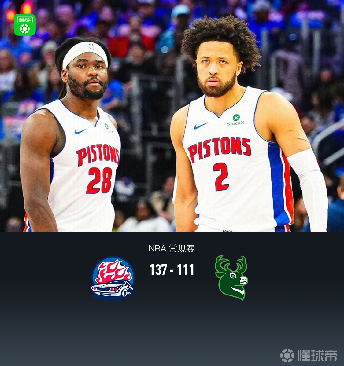 第四節(jié)活塞杰倫-杜倫拿下10分,雄鹿科馬克-瑞安拿下8分,最終活塞137-111戰(zhàn)勝雄鹿
