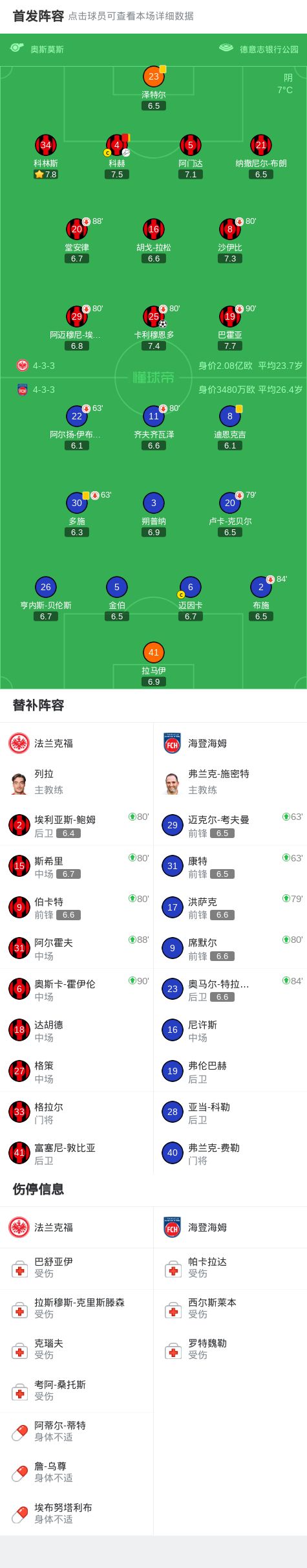 北京時(shí)間3月14日德國足球頂級聯(lián)賽第26輪,法蘭克福主場對陣海登海姆。下半場卡利穆恩多打破僵局,科赫防守犯規(guī)兩黃變一紅被罰下場。最終比分法蘭克福 1-0 海登海姆。