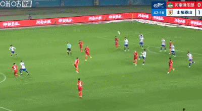第42分鐘,王國明出擊胸部停球送空門!瓦科吊射破門,泰山1-0領(lǐng)先河南!