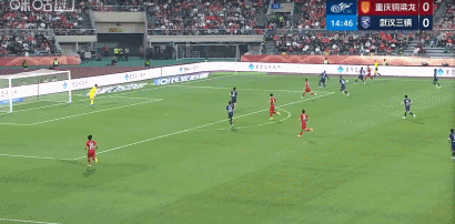 第23分鐘,肯帕努助攻,張志雄頭球得分,銅梁龍2-0領(lǐng)先