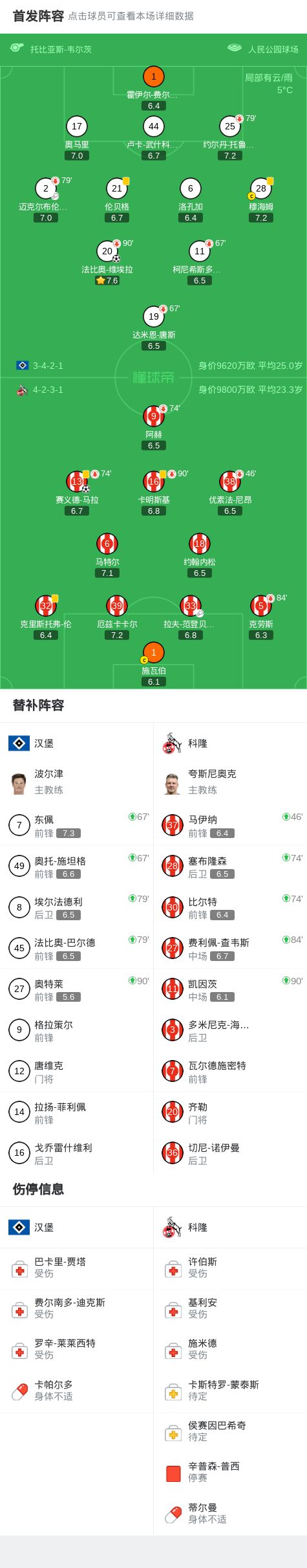 北京時間3月15日德國足球頂級聯(lián)賽 聯(lián)賽 第26輪,漢堡主場對陣科隆。漢堡法比奧-維埃拉破門??坡≠惲x德-馬拉破門。最終比分漢堡 1-1 科隆。