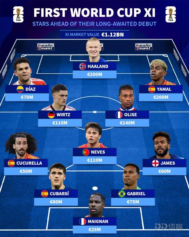 德國(guó)轉(zhuǎn)會(huì)市場(chǎng)列出了預(yù)計(jì)將首次參加世界杯的球員陣容,亞馬爾、哈蘭德、維爾茨、奧利塞在列。