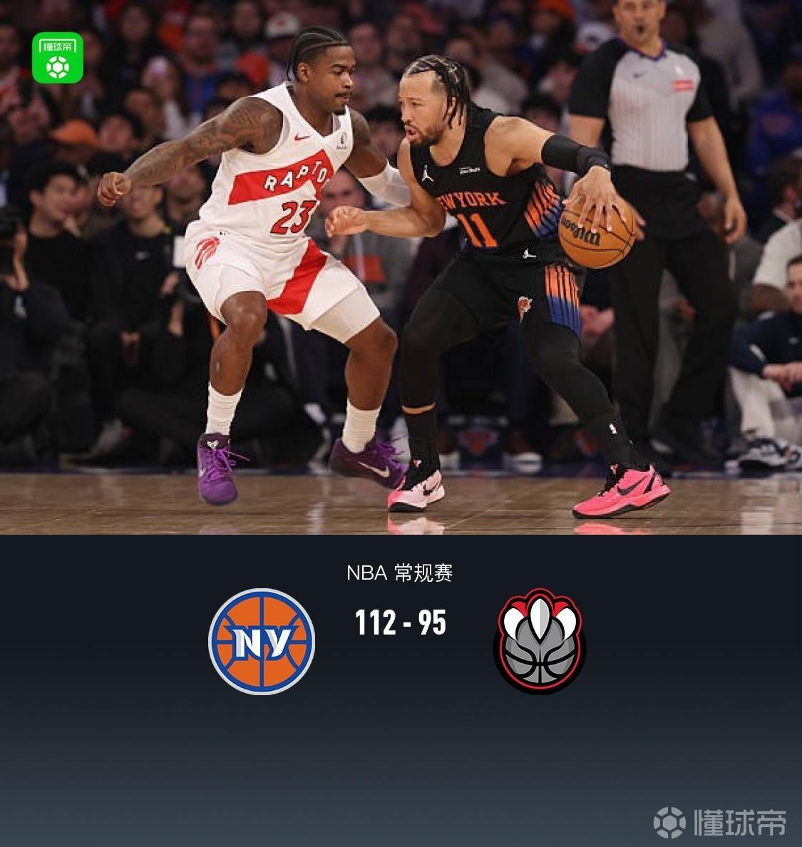 第四節(jié)尼克斯米卡爾-布里奇斯拿下6分,猛龍斯科蒂-巴恩斯拿下7分,最終尼克斯112-95戰(zhàn)勝猛龍