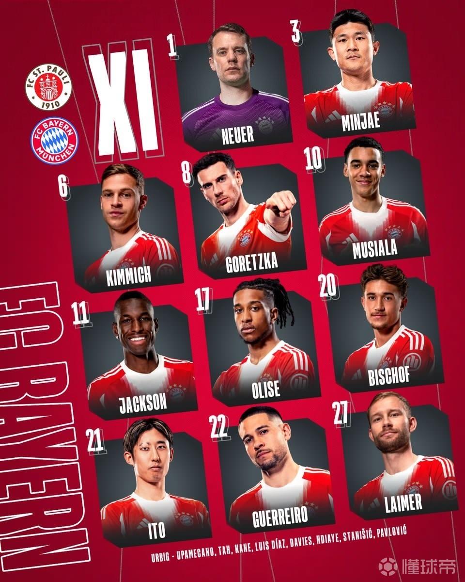 北京時間4月12日0:30,德甲第29輪,拜仁客戰(zhàn)圣保利。賽前首發(fā)公布。