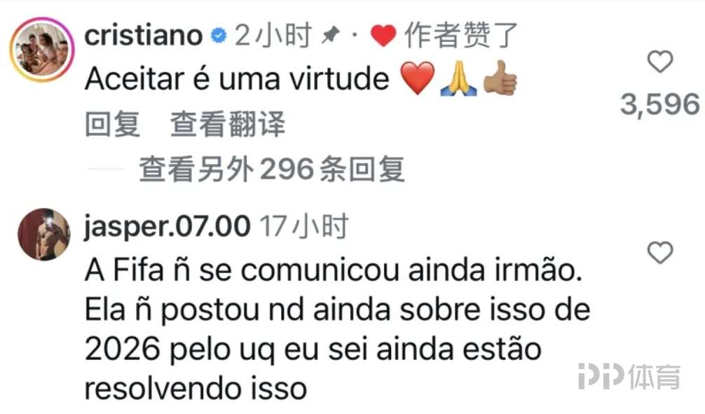 C羅本人在這條內容下留言: “接受是一種美德”,親自回應了這一爭議。