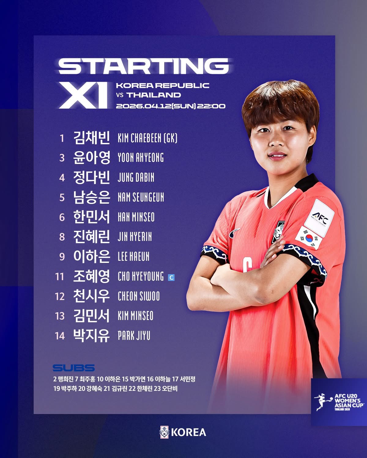 附:韓國U20女足八強(qiáng)戰(zhàn)對泰國名單
