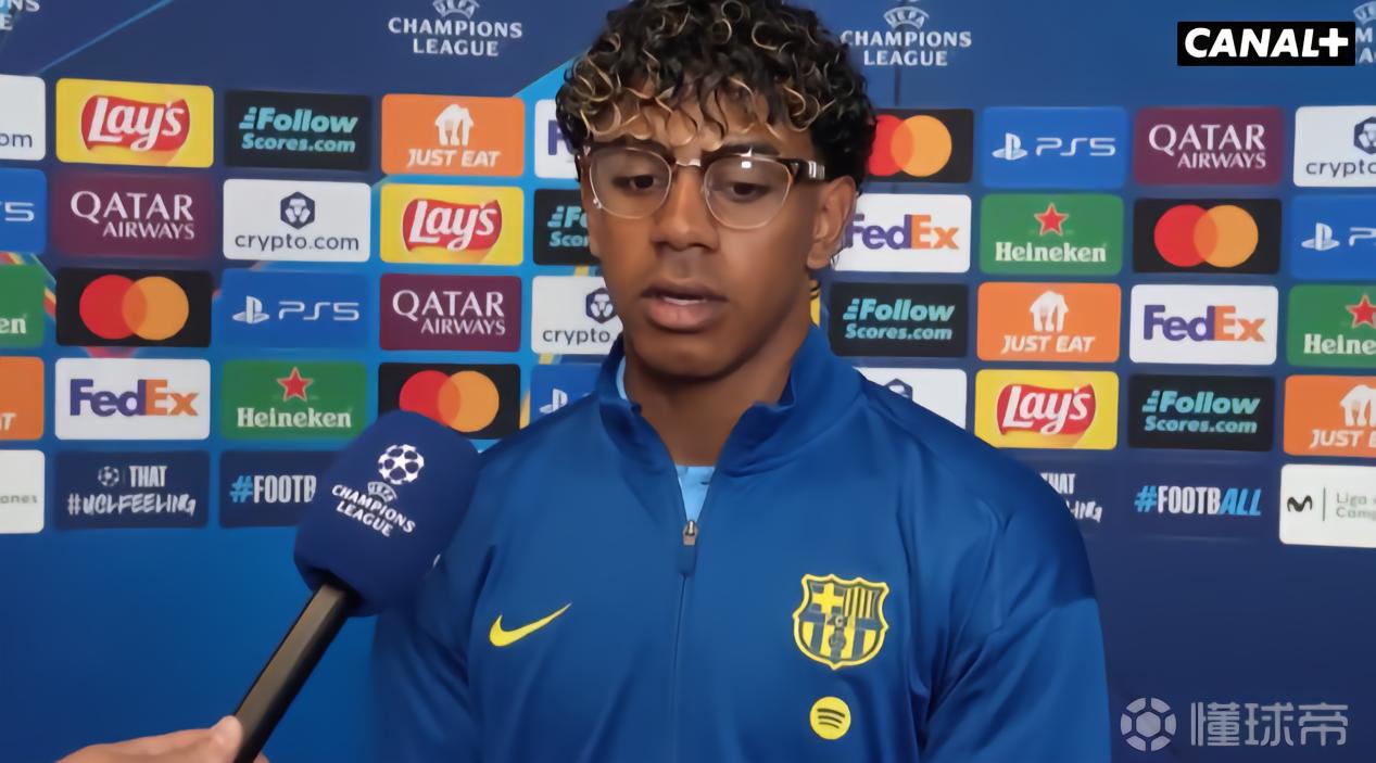 歐冠1/4決賽次回合,巴薩客場對陣馬競,亞馬爾賽前接受了CANAL+的采訪。