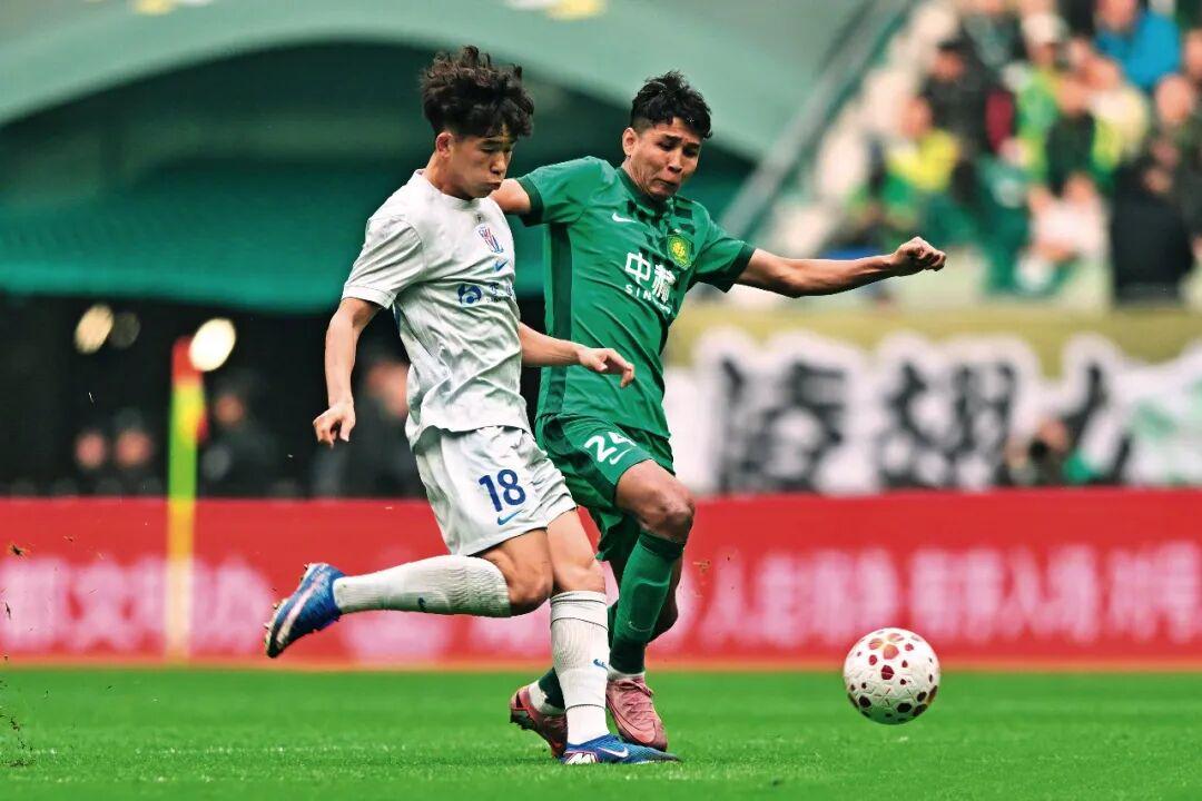 都因罰分位列積分榜末段,都在開(kāi)局階段傷兵滿營(yíng),但比以往來(lái)得稍早一些的“京滬德比”,依然是中國(guó)足壇的經(jīng)典戲碼。恩科洛洛與張玉寧的絲滑連線,為御林軍先拔頭籌,后者也成為國(guó)安隊(duì)史職業(yè)聯(lián)賽首位在開(kāi)季前三輪均有進(jìn)球的本土球員。但在下半場(chǎng)開(kāi)局階段,提升轉(zhuǎn)換速度的上海申花連續(xù)發(fā)起進(jìn)攻,逐漸占據(jù)主動(dòng),并由陳晉一罰入直接任意球扳平比分。最終,這場(chǎng)殘陣之爭(zhēng)以平局收?qǐng)?,雙方都沒(méi)能在間歇期前將積分“清零”。