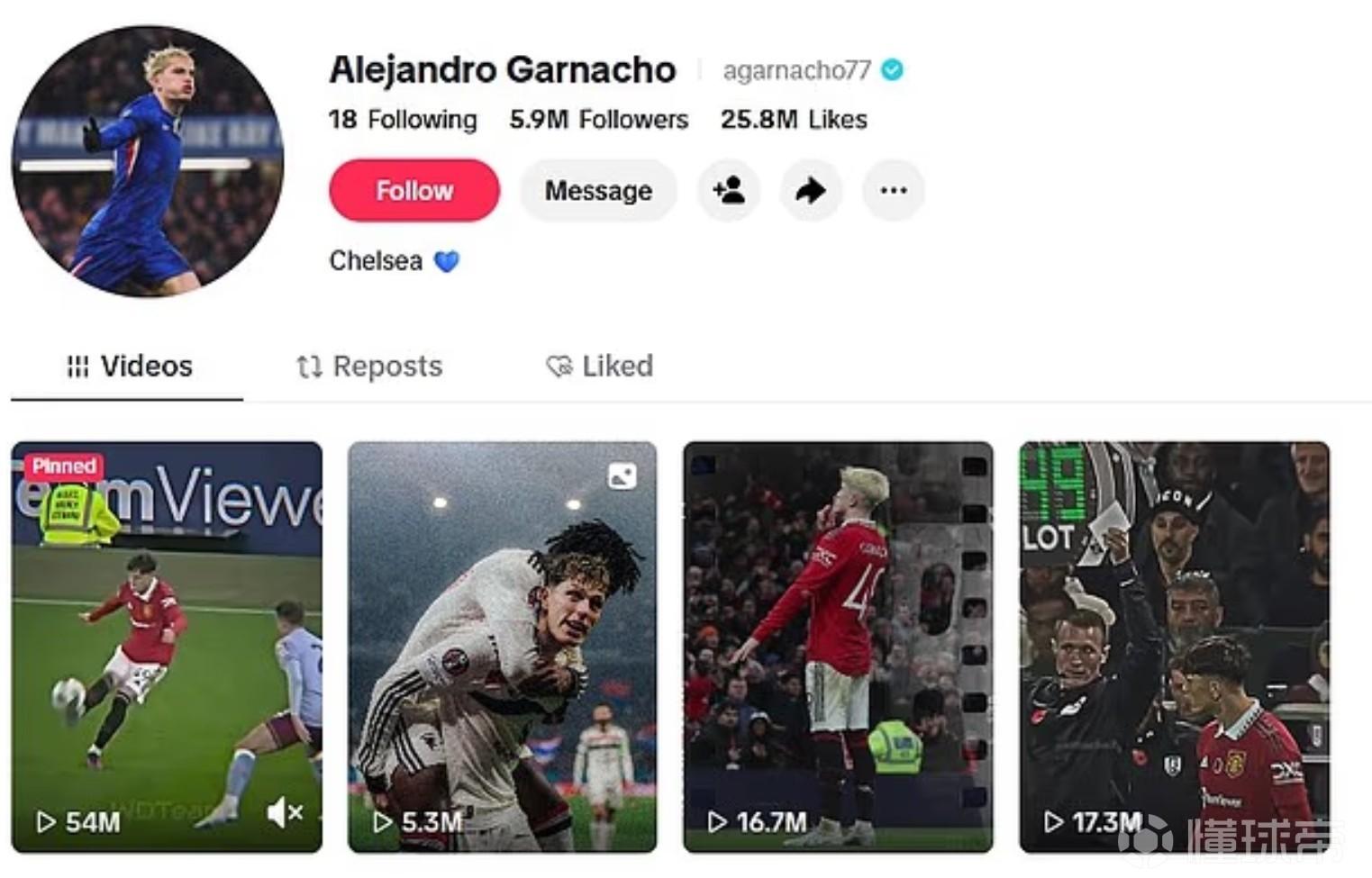 有媒體稱加納喬清空其TikTok賬號中所有切爾西相關(guān)視頻,僅保留效力曼聯(lián)時期的視頻,并轉(zhuǎn)發(fā)球迷呼吁其回歸的懷舊剪輯,跟隊記者Bobby Vincent表示加納喬轉(zhuǎn)會后就沒發(fā)過內(nèi)容。