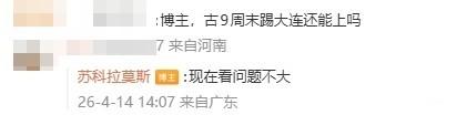 之后有球迷在評論區(qū)詢問球員能否出戰(zhàn)大連英博,博主回復:現(xiàn)在看問題不大。