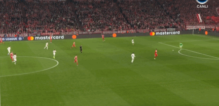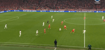 第30分鐘,居萊爾任意球直掛死角,皇馬再度扳平總比分3-3拜仁!