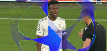 第10分鐘,維尼修斯推倒基米希,被主裁判口頭警告