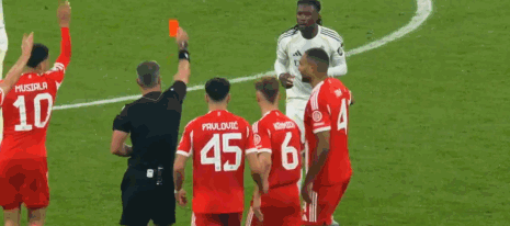 歐冠1/4決賽次回合,皇馬客場對陣拜仁,卡馬文加在第87分鐘累計(jì)兩張黃牌被罰下。至此,皇馬本賽季在歐冠已吃到4張紅牌,這一數(shù)字超過球隊(duì)過去8個(gè)賽季的歐冠紅牌總和。