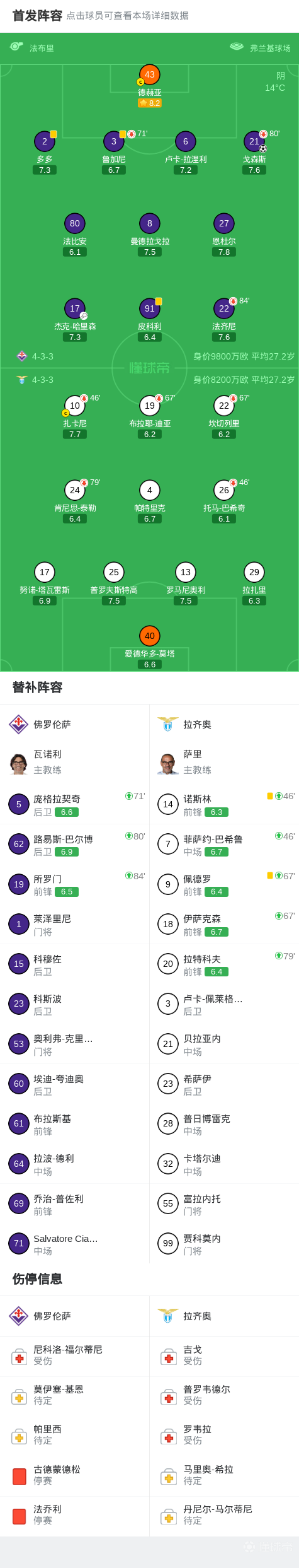 北京時間4月14日意大利足球甲級聯(lián)賽第32輪,佛羅倫薩主場迎戰(zhàn)拉齊奧。上半場戈森斯把握機會打入全場唯一進球。最終佛羅倫薩1-0戰(zhàn)勝拉齊奧。