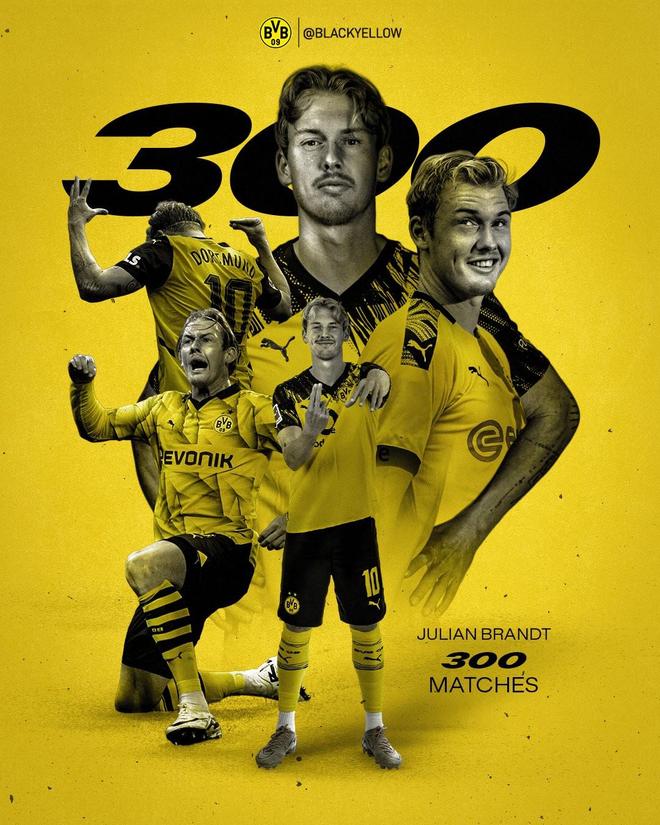 本場比賽,多特中場布蘭特替補出場,本場是他代表多特出場的第300場比賽,據(jù)統(tǒng)計,布蘭特是多特隊史第20位達成300場里程碑的球員。