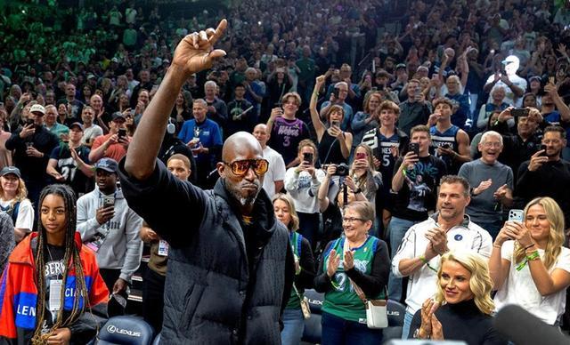 在森林狼與鵜鶘比賽場邊,來了一位重量級的嘉賓,他就是加內(nèi)特。森林狼官方也在現(xiàn)場大屏幕上歡迎加內(nèi)特回歸。這是加內(nèi)特時(shí)隔8年重返森林狼主場看球。在與前老板格倫-泰勒關(guān)系不睦之后,加內(nèi)特曾一度銷聲匿跡,如今森林狼更換了老板,加內(nèi)特不僅成為球隊(duì)大使,他的21號球衣也將退役。