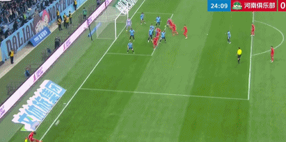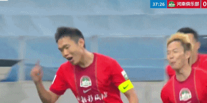第38分鐘,廖錦濤禁區(qū)內(nèi)解圍失誤,王上源得球晃開角度勁射破門,河南隊取得領(lǐng)先。王上源的這次射門,足足穿透了5名防守球員。