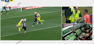第29分鐘,倫佩爾禁區(qū)內(nèi)倒地,主裁判認為沒有問題