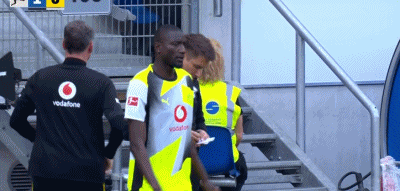 第90+13分鐘,布蘭特任意球射門之前,科貝爾上前現(xiàn)場輔導(dǎo)
