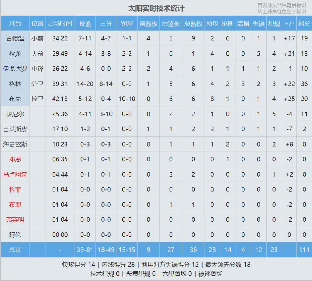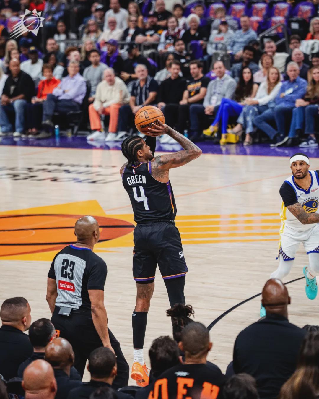 布克和場邊的追夢對噴垃圾話,主裁判福斯特將兩人驅(qū)逐。太陽111-96淘汰勇士,挺進(jìn)季后賽,本賽季附加賽全部結(jié)束。杰倫-格林36分6板4助2斷3帽、布克20分6板8助、古德溫19分9板6斷。兩場附加賽,杰倫-格林一共轟下71分!