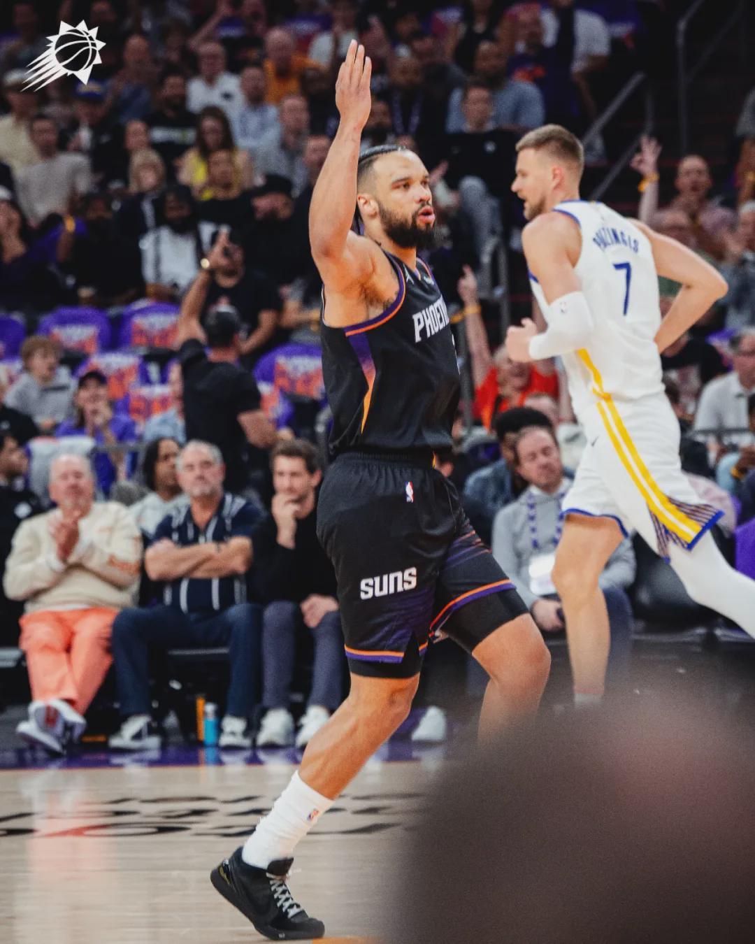 半場戰(zhàn)罷,太陽50-45領(lǐng)先勇士5分。波杰姆斯基12分5板,得分全隊(duì)最高,庫里6中2得到7分4板3助2斷。太陽杰倫-格林14分3板2助2帽、布克9分3板3助、古德溫6分5板4斷。第三節(jié)剛開始,布克4犯了,狄龍和杰倫-格林外線開炮。