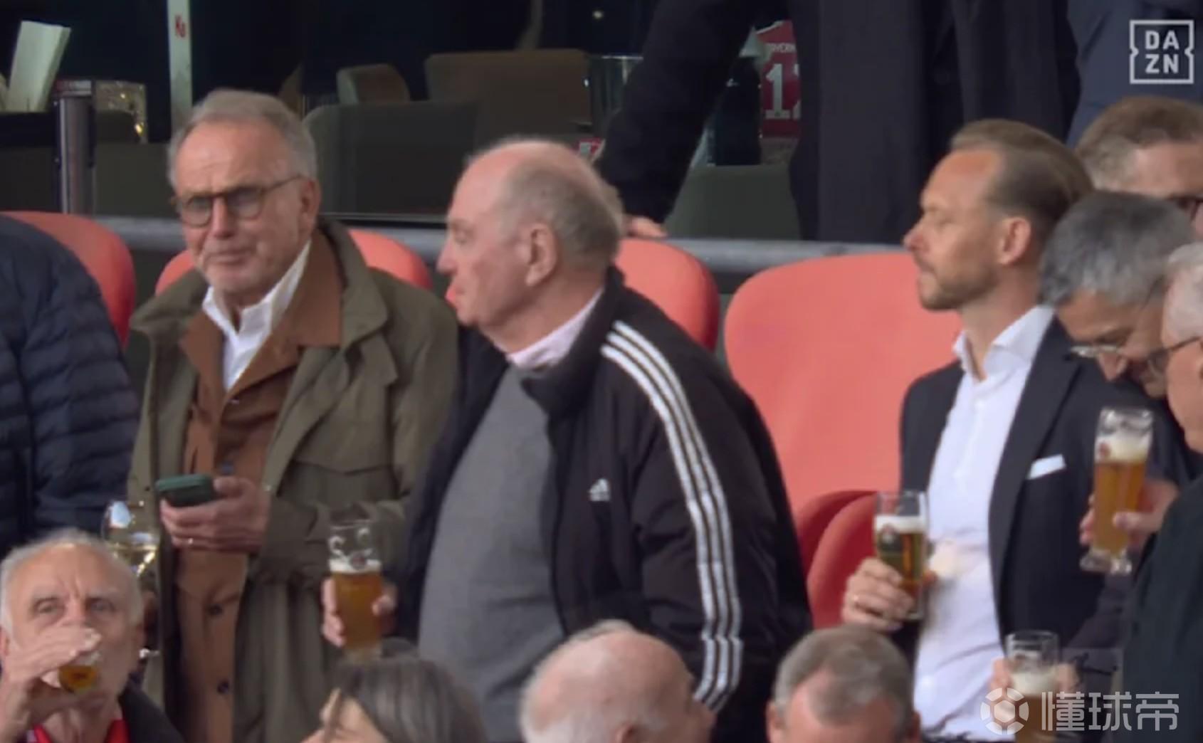 赫內(nèi)斯與俱樂部主席海納一樣,選擇喝了一杯小麥啤酒。而監(jiān)事會(huì)成員魯梅尼格則選擇了白葡萄酒。
