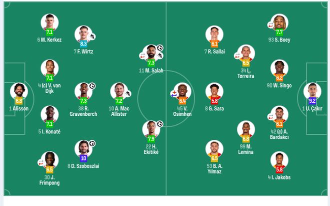加拉塔薩雷首發(fā):1-恰基爾、90-辛格、42-巴爾達克徹、4-伊斯梅爾·雅各布斯、93-博伊(46’77-諾阿·朗)(80’9-伊卡爾迪)、34-托雷拉(60’11-阿克金)、99-勒米納、8-加布里埃爾·薩拉、53-伊爾馬茲、7-紹洛伊、45-奧斯梅恩(46’10-薩內)