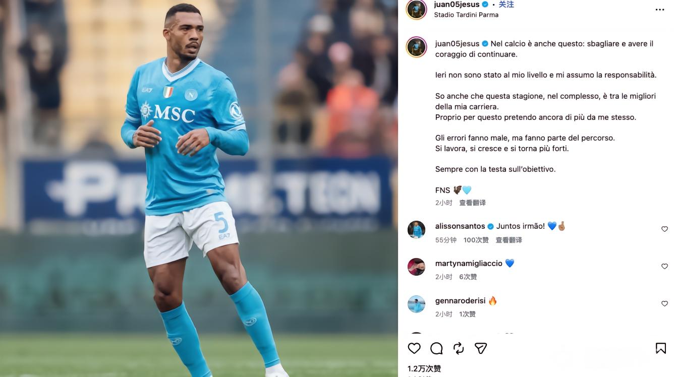 胡安-熱蘇斯:踢帕爾馬我沒達(dá)到應(yīng)有水準(zhǔn),這個責(zé)任由我承擔(dān)